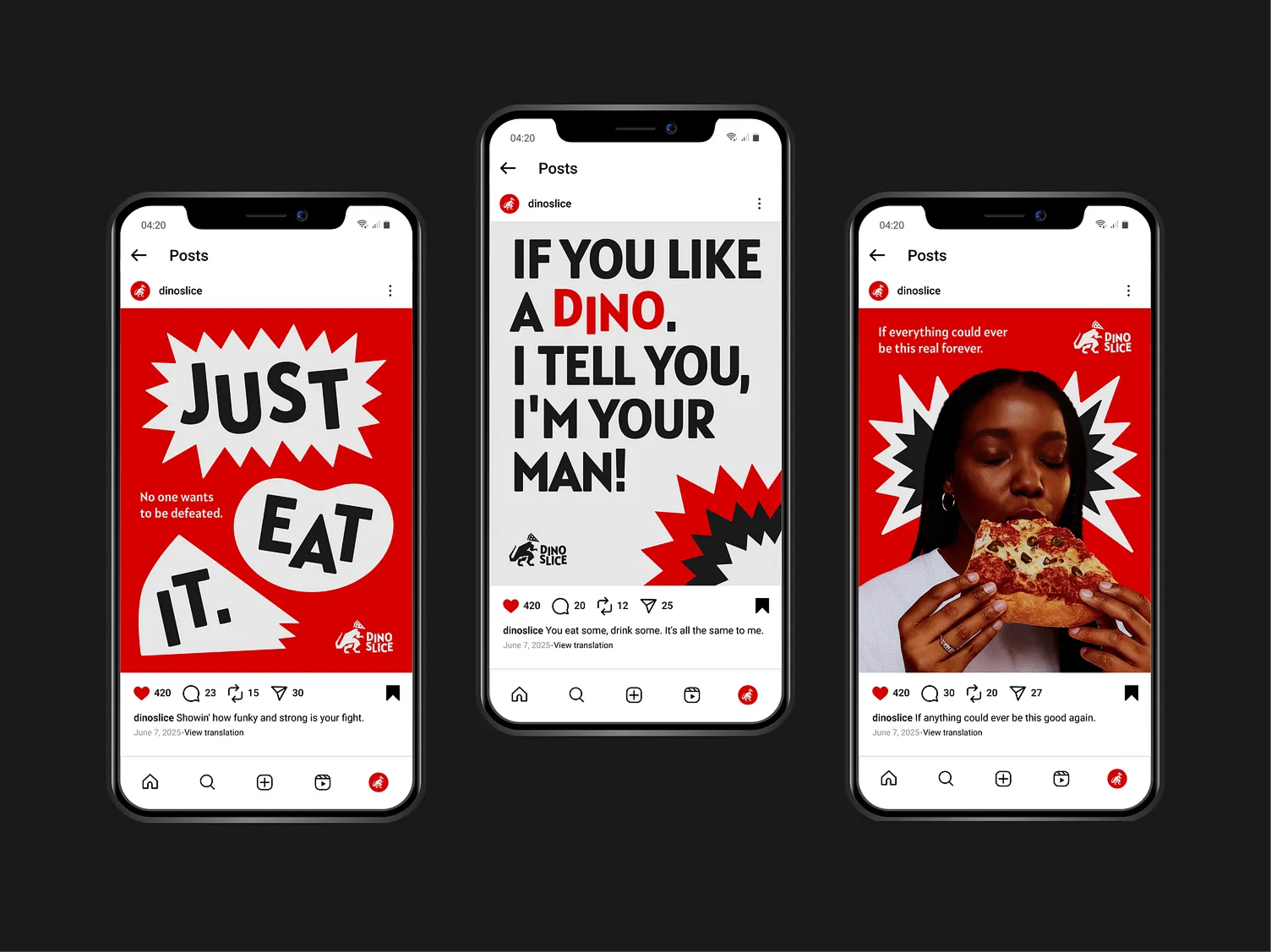 Dino Slice is a vibrant, bold, and fun pizza brand that brings prehistoric energy to modern pizza culture. Designed for those who live life with big bites and bigger personalities, the brand celebrates indulgence, excitement, and the joy of sharing. Dino Slice encourages everyone to “go extinct for the last bite,” turning every pizza moment into a playful and memorable experience filled with flavor and attitude.
